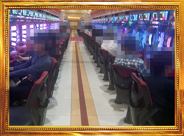 高稼働となっている「バジリスク~甲賀忍法帖~絆」にも、理想的といえる展開で遊技をおこなうプレイヤーが目立ち、シマ内はにぎやかな状況。