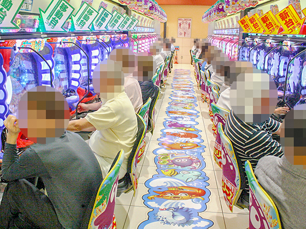 店内には老若男女を問わずプレイヤーが集合。パチンコ・パチスロの各シマから活気が感じられた。