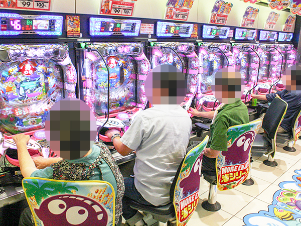 14時ごろの1円パチンコを見ると、「CR大海物語4」や「CR大海物語4 BLACK」、「CRAスーパー海物語 IN JAPAN with 桃太郎電鉄」など、海物語シリーズを中心に微笑ましいシーンを目にしている。
