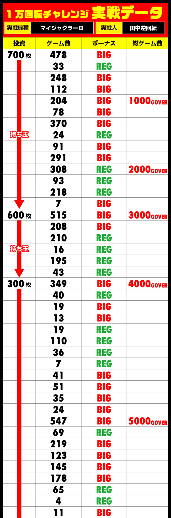 体力と集中力の低下にくわえ、増え続けるボーナス回数が田中逆回転の足を止め、夕方以降にはペースダウン。