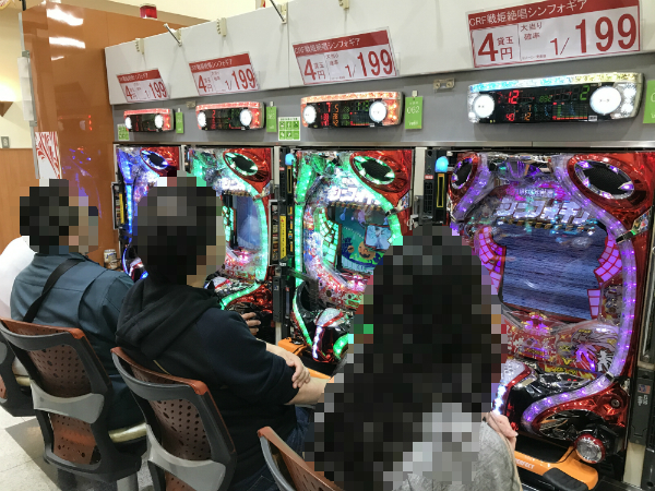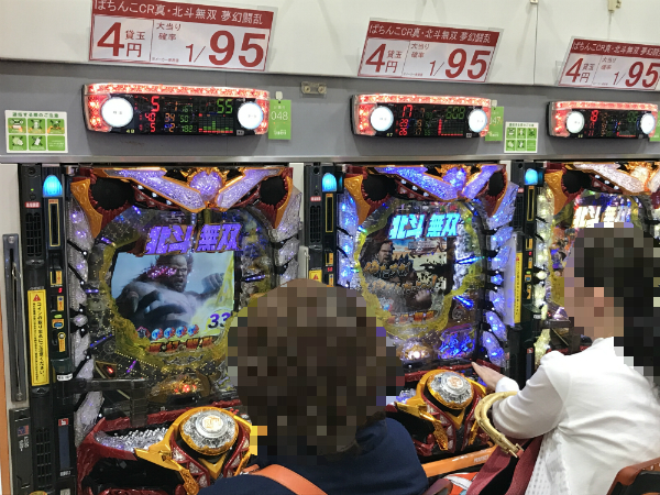 17時頃の4円パチスロコーナーでは、「ぱちんこCR真・北斗無双」や「CRフィーバー機動戦士Zガンダム」の人気が高く、それぞれ納得の表情で遊技をおこなう姿を目にしている。