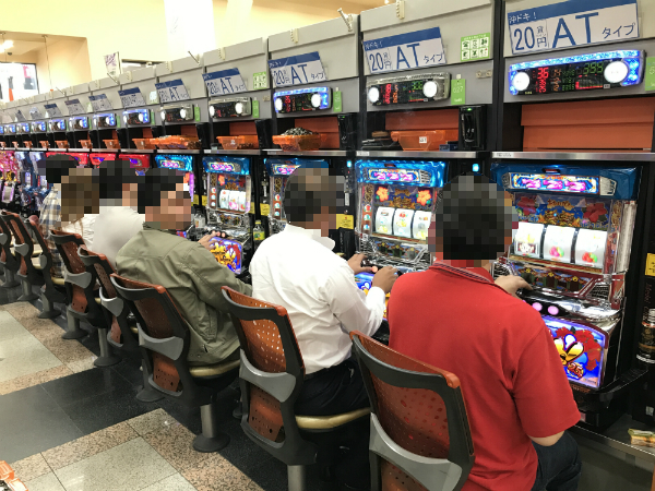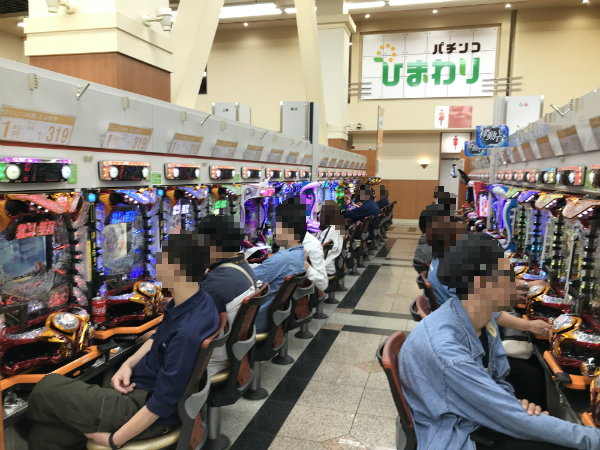 店内には多くのプレイヤーが遊技をおこなっており、パチンコ・パチスロ共に、様々な機種が支持を集めていた。