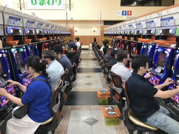 5円パチスロコーナーを覗いてみると、「押忍!番長3」や「ミリオンゴッド-神々の凱旋-」の盛り上がりが大きい。華やかな展開で遊技をおこなっているプレイヤーの姿からは、充実した時間を過ごせていることが伝わってきた。