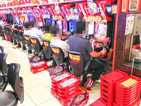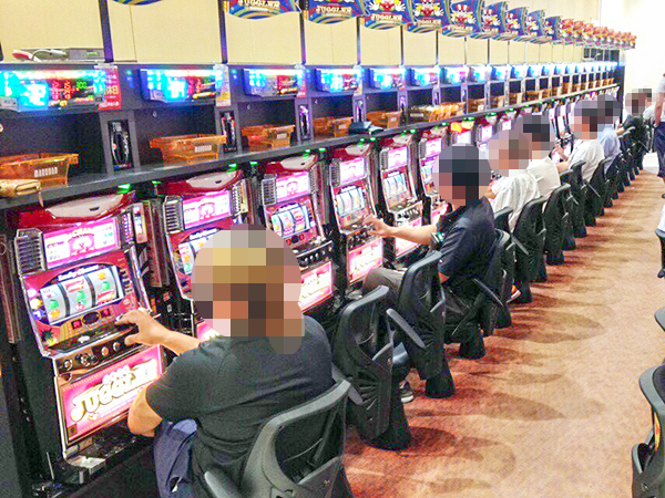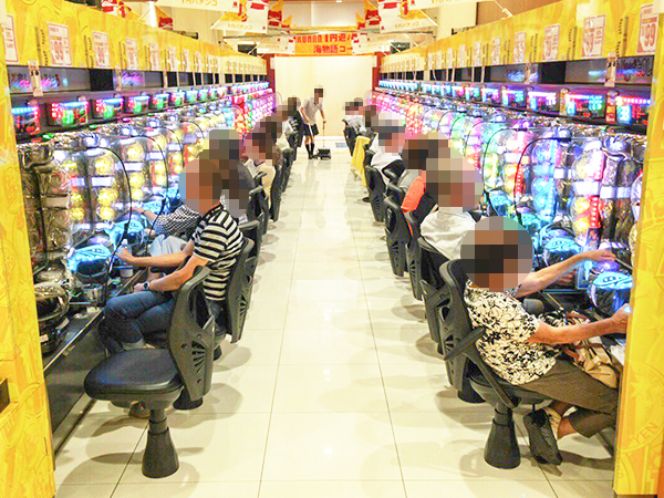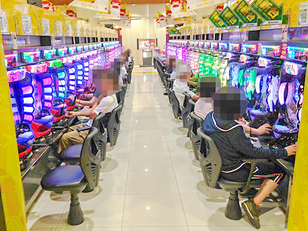 取材時の店内には既に多くのプレイヤーが集結し、パチンコ・パチスロを問わずにぎやかな状況となっていた。