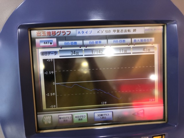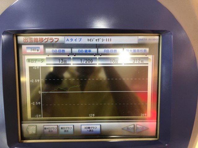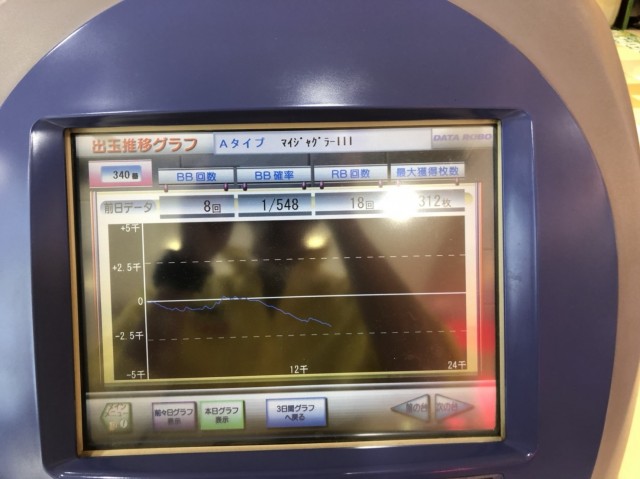 前日は8000回転以上ブン回されており、REGもしっかりついて好挙動の気配を感じるものの、グラフは下降気味……。