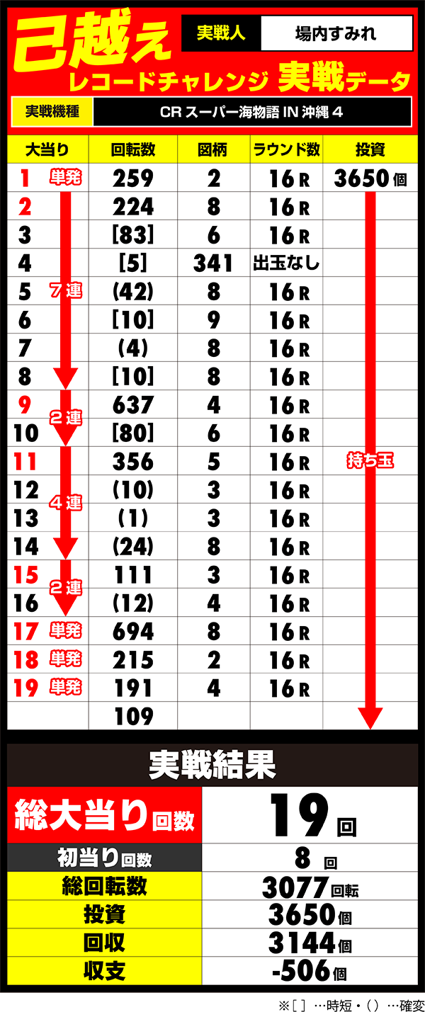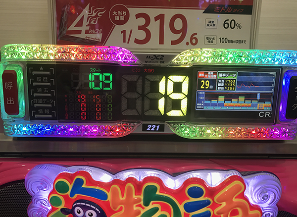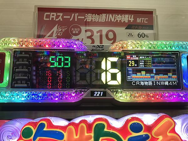 序盤は順調であっただけに、18時から3回しか大当り回数を増やせなかったなど、終盤に失速してしまったことが悔やまれる。