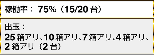 『ぱちんこCR北斗の拳7 転生』では25箱の出玉を目にしている。