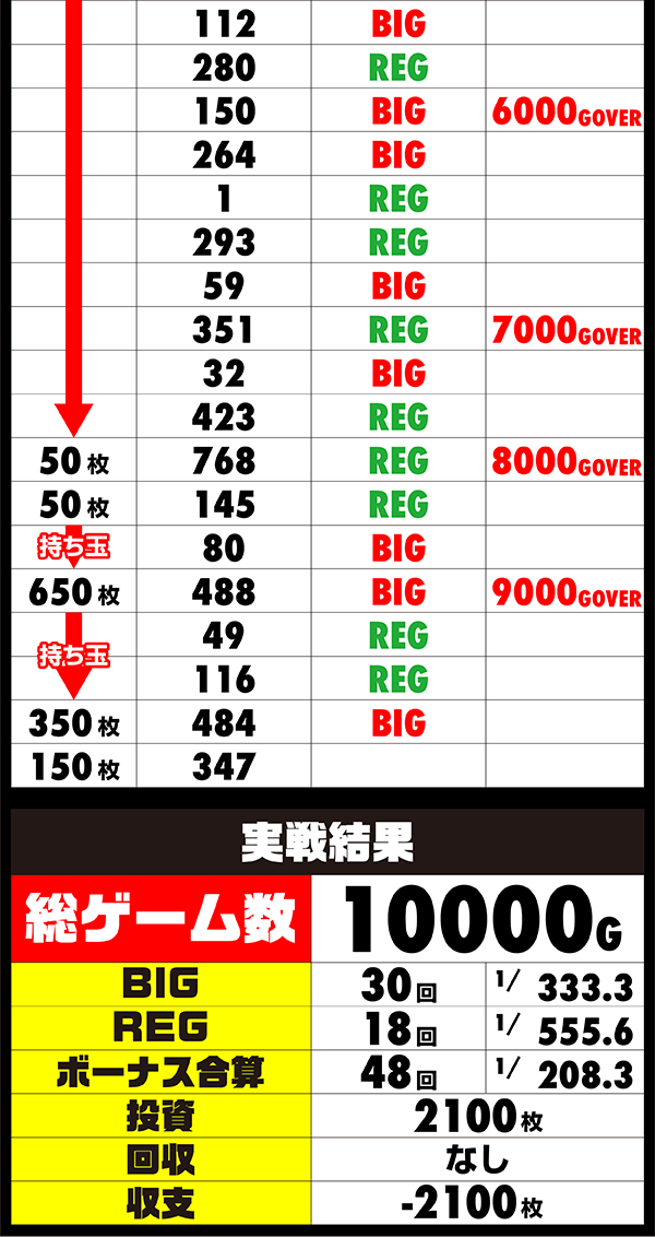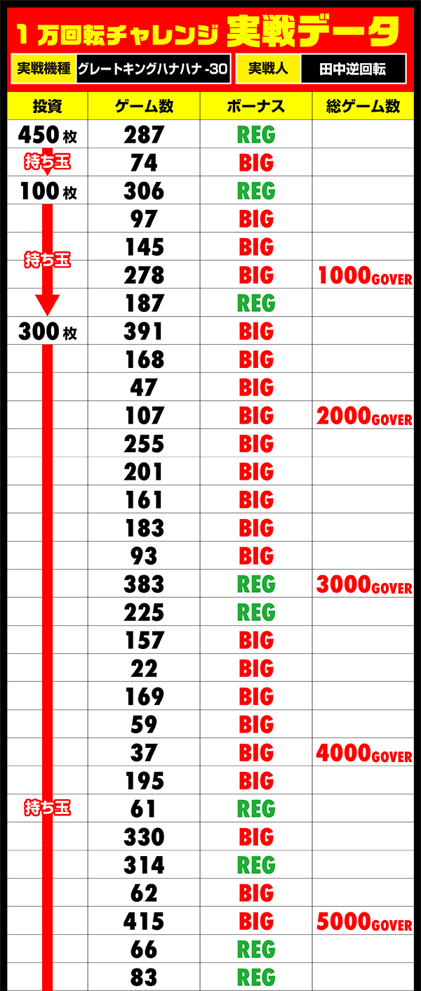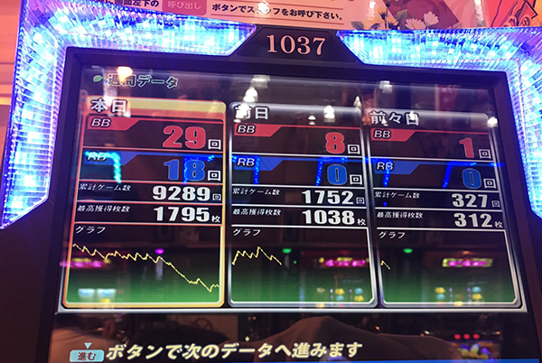 5000Gを通過した時点で差枚もプラスと、理想的な展開で折り返し地点を通過できたといえるだろう。