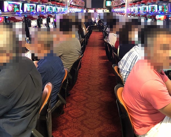 4円パチンコで人気を集めていたのは、新台の「ぱちんこCR北斗の拳7 百裂乱舞」と「CRぱちんこ冬のソナタ Remember」。理想的ともいえる展開で遊技を楽しんでいる場面もみられ、プレイヤーたちに尊敬の眼差しを向けた。