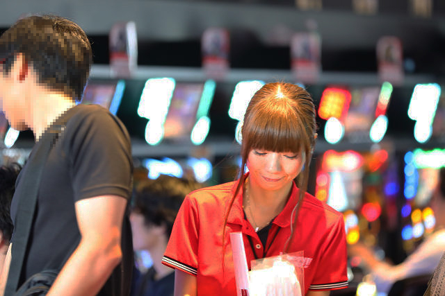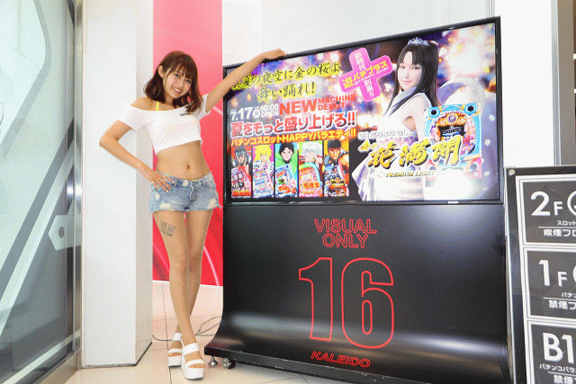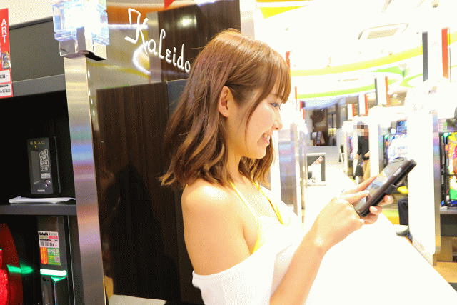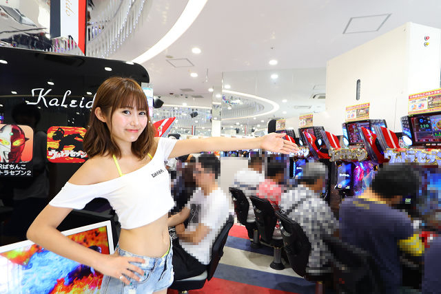 抽選待ちしているファンの皆さんに失礼して、祐紀ちゃんが「ヘルシーパチンコ・カレイド新宿店」へ、一足早く初潜入~♥