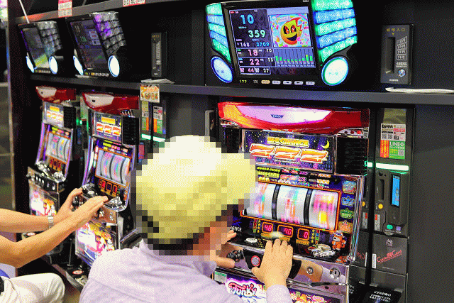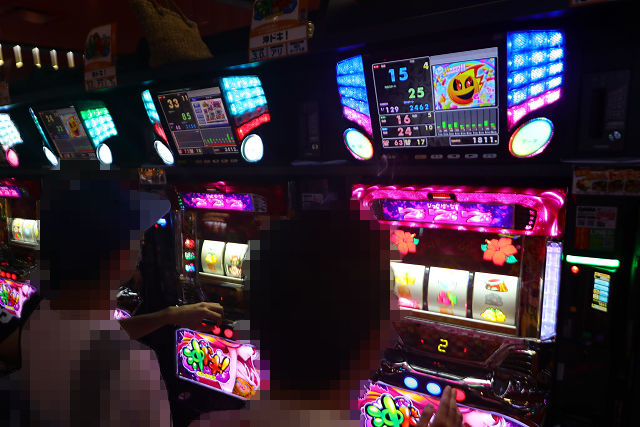2Fのパチスロフロアでは、あちらこちらでボーナス、AT・ARTが熾烈に炸裂。Aタイプ・沖スロ