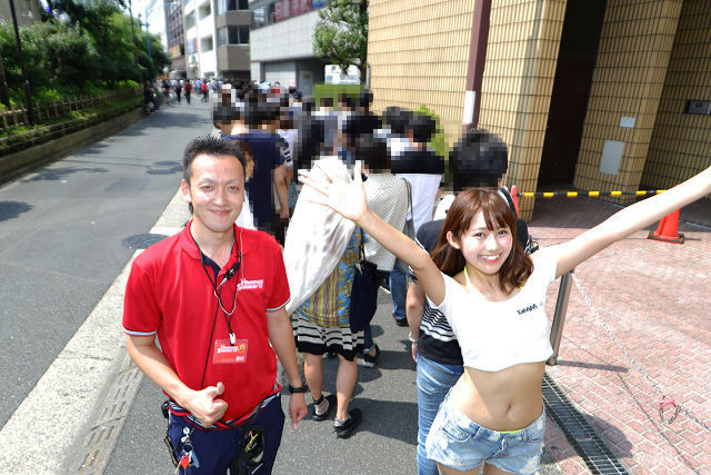どこまでも続く長い長い列。灼熱の空の下でもファンはへこたれない。それだけ期待値も高い証拠だ!