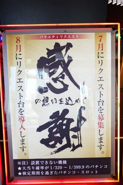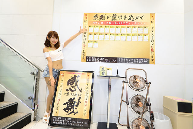出入り口付近には、機種リクエストコーナーも。ファンの熱烈な要望に真摯に答えているのもカレイドの大きな魅力だ。