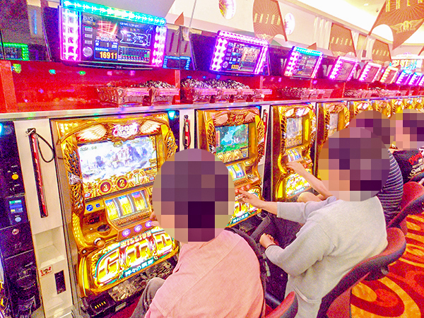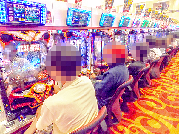 20円パチスロに目を向けると、「ミリオンゴッド-神々の凱旋-」や「バジリスク~甲賀忍法帖~絆」、「戦国コレクション2」などで、プレイヤーが華麗なパフォーマンスを披露。シマ全体に華やかな光景が広がっていた。