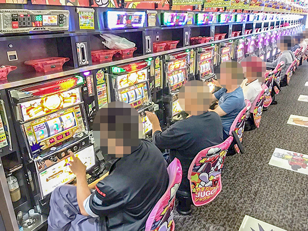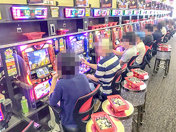 取材時は既に多くのプレイヤーであふれており、パチンコ・パチスロを問わず活気づいていた。
