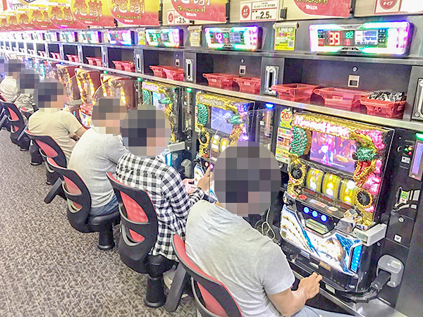 5円・2円パチスロは機種を問わず支持が厚く、多くのプレイヤーから笑みがこぼれていた。