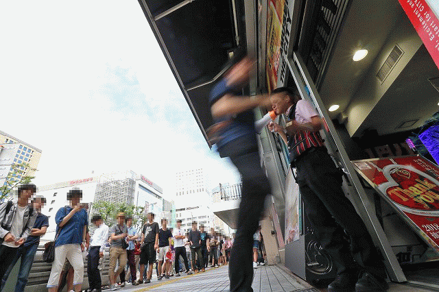 店舗前にスタンバイしていたファンが、勢いよく店内へと身体を滑り込ませていく!!