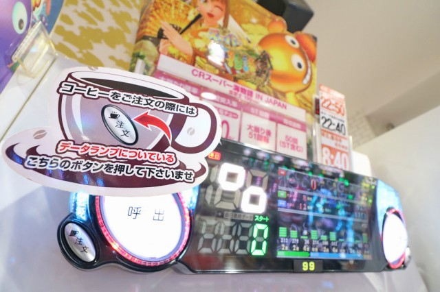 | データランプにはカフェの注文ボタンがっ!さらに、台間にはUSB給電ポートや別口の呼出ボタン、各種ガイドも設置された至れり尽くせりのフル装備仕様! | |