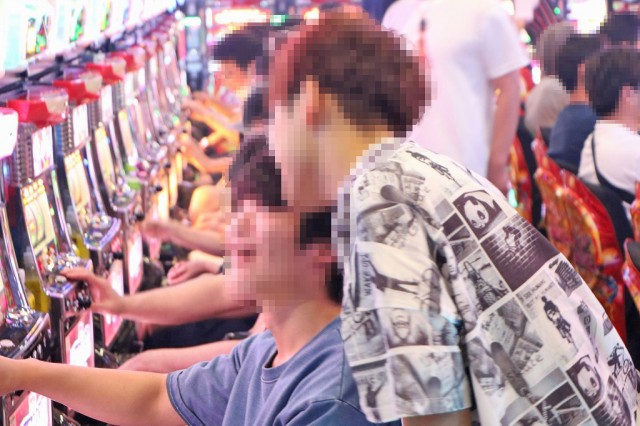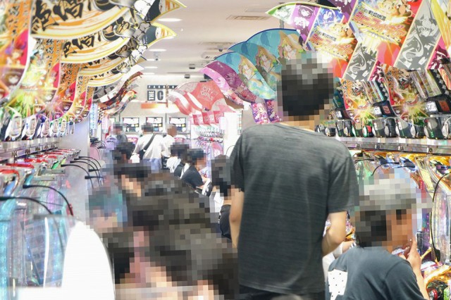朝イチ人気が集中した2F・パチスロフロアでは、空台を求めてファンが右往左往!