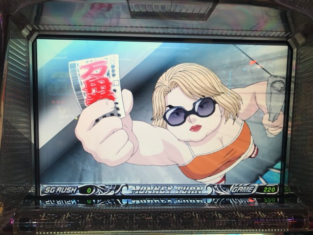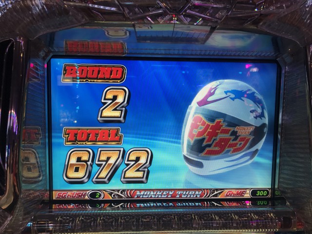 ヘルメットにモンキーターンの文字が出たので、一応天国まで回してみましたが初当りは取れず。