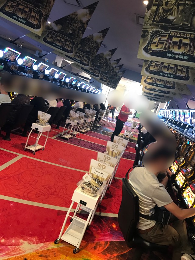 案の定、メイン機種に空き台などあるわけもなく、私を待ち受けていたのはGG中の『ミリオンゴッド-神々の凱旋-』。