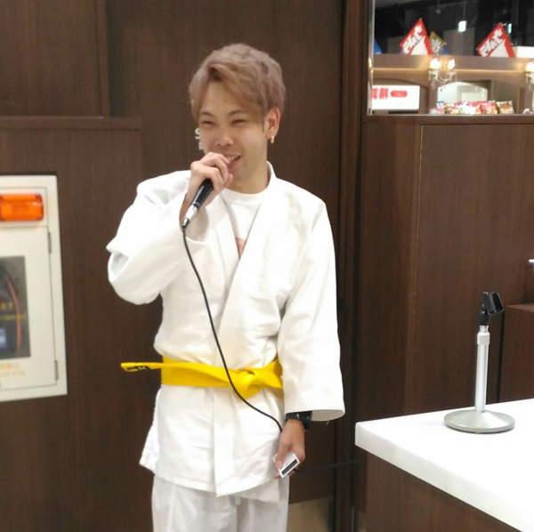 私服姿で楽しそうにプレイヤーと開店を待ったあとは、道着にコスチュームチェンジ!