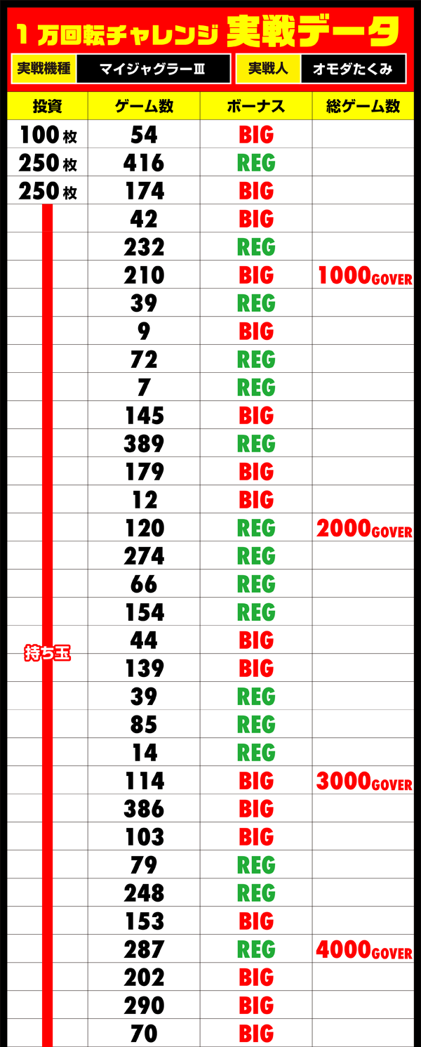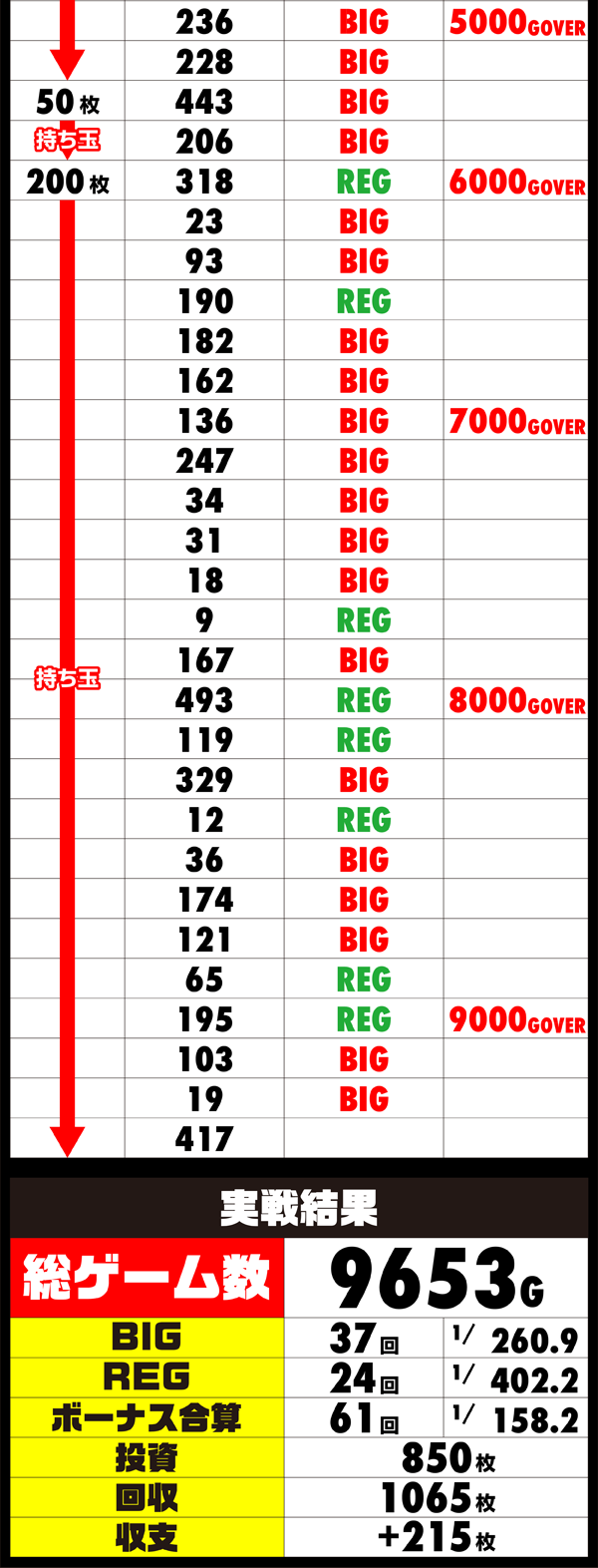 個人的に目指していたプラスの差枚は達成したが、本来の目的は果たせず…。
