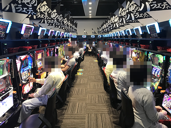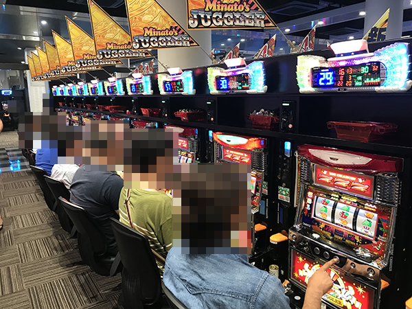 見応えのあるシーンが満載の『JOY PARK湊店』。遊技を満喫しているといったプレイヤーばかりで、ついつい足を止めて眺めていたくなるほどであった。