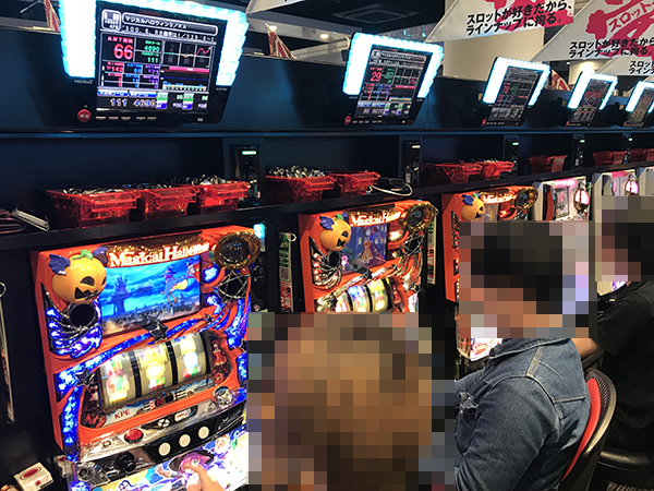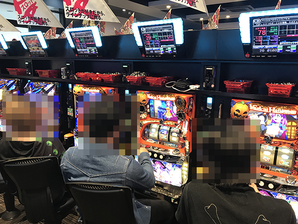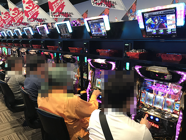 18時頃のホール内には、たくさんのプレイヤーが集まっており、満面の笑みを浮かべて遊技をおこなっていた。