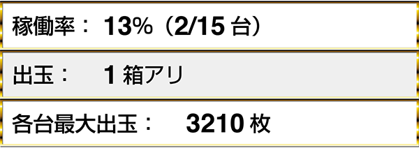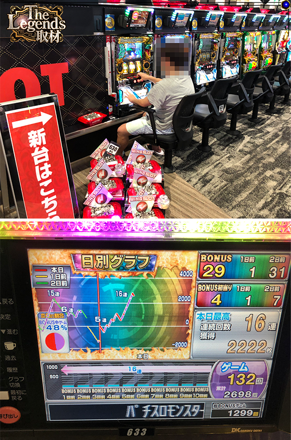取材時にみられたもっとも多い獲得出玉は『パチスロ モンスターハンター 月下雷鳴』の7箱。