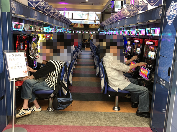 2日間、続けて海物語シリーズが注目を集めている100円/96玉パチンコの稼働率も高い。
