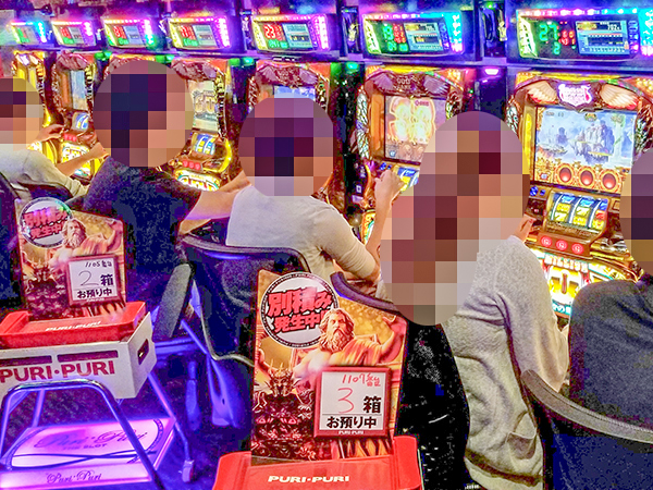 16時半ごろの1000円/235玉パチンコを見ると、「CR真・花の慶次2~漆黒の衝撃 2400」や「CR聖闘士星矢4 The Battle of ”限界突破”」、「CRフィーバーアクエリオンW」が活気づいており、あちこちでプレイヤーの嬉しそうな表情を目にしている。