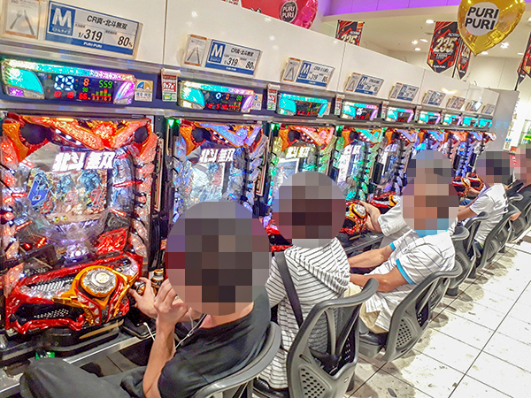 14時ごろの4.25円パチンコでは、「ぱちんこCR真・北斗無双」や「ぱちんこCR真・北斗無双 第2章」が活況の様子。機種のポテンシャルをフルに活かすプレイヤーを複数確認している。