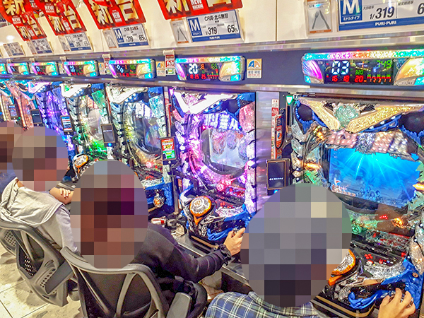 1,000円/940玉パチンコは全体的に高稼働で、空き台を探すのがやっとなほど。各人、好きな機種を見つけ出し、心から楽しんでいたように思う。