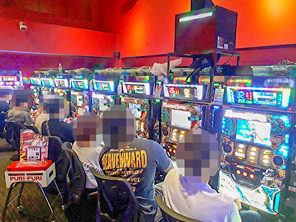 取材時の店内には既に多くのプレイヤーが集結し、パチンコ・パチスロを問わずにぎやかな状況となっていた。