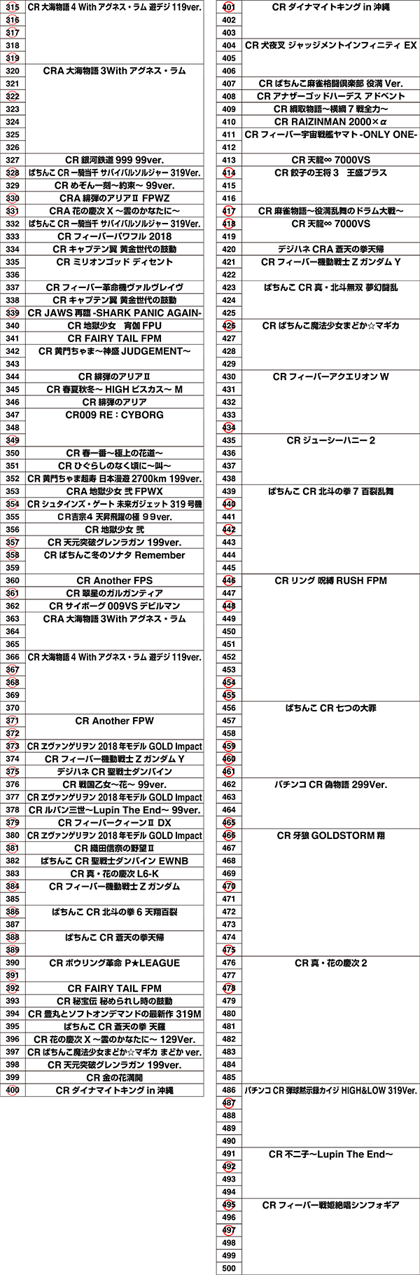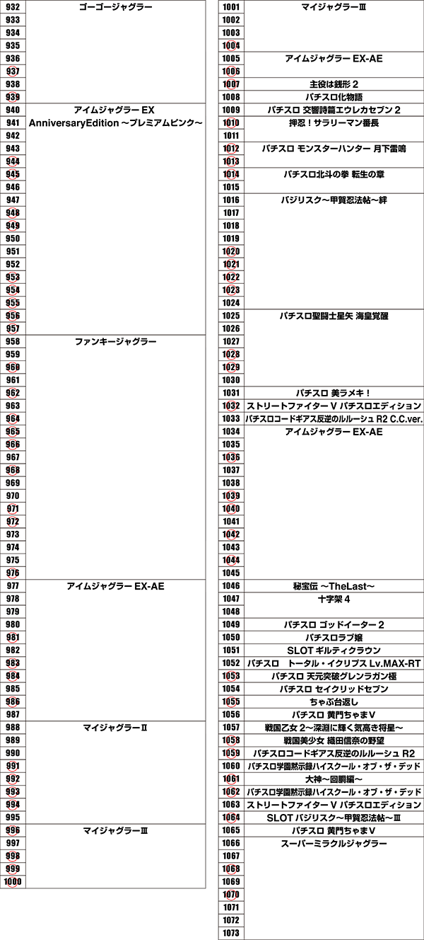 また、ジャグラーシリーズ筆頭に、ボーナスタイプでも赤丸をつける機会は多かった。