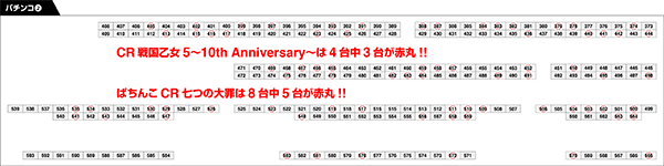 4台設置されている「CR戦国乙女5〜10th Anniversary〜」には、3台に丸をつけた。