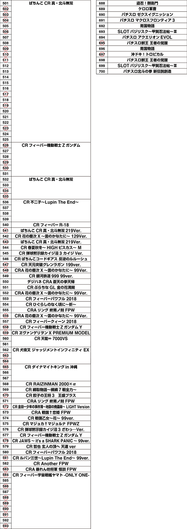 「ぱちんこCR真・北斗無双」と「CR真・花の慶次2」にも、たくさんの赤丸をマーク。