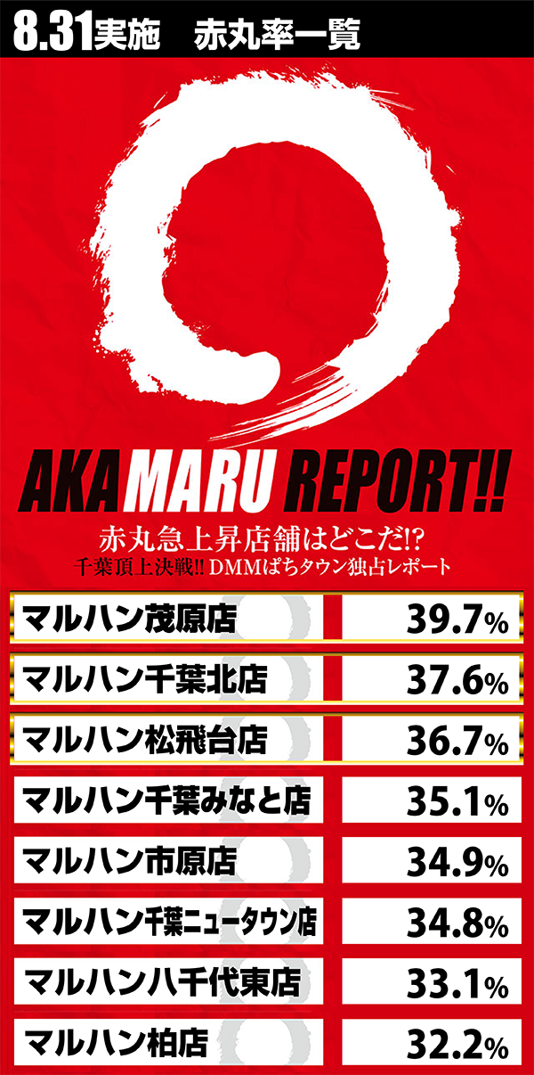 8月31日に「AKAMARU REPORT」をおこなったのは、「マルハン千葉北店」。