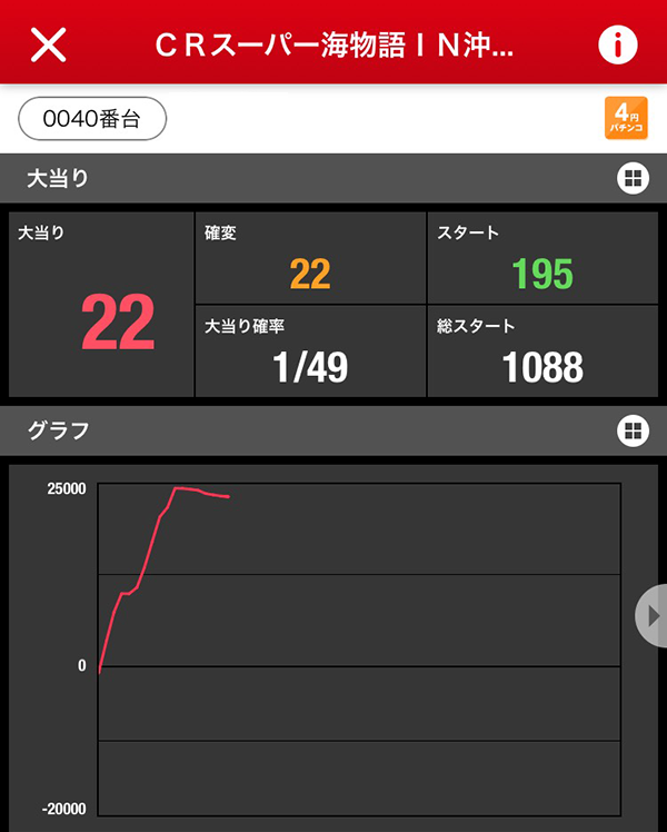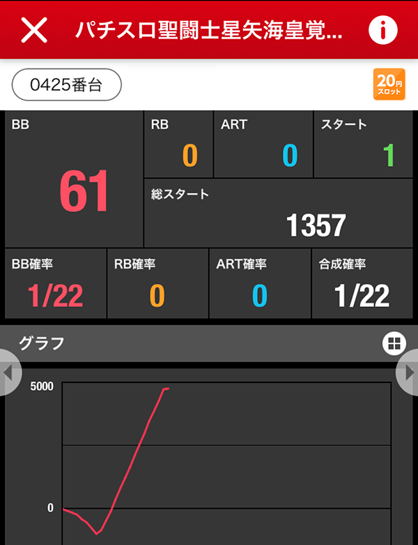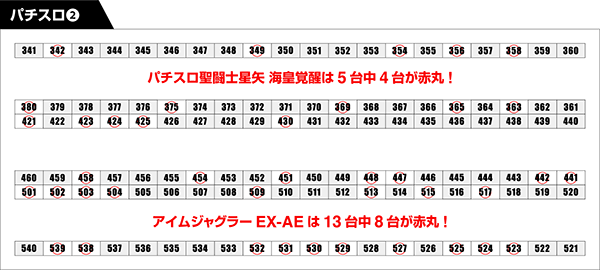つづいては、ホール内で抜群の存在感を放っていた赤丸台が登場。台のデータも要チェック!!