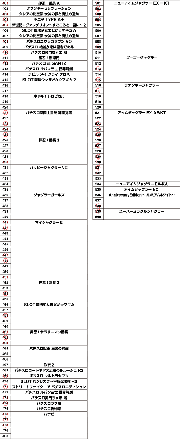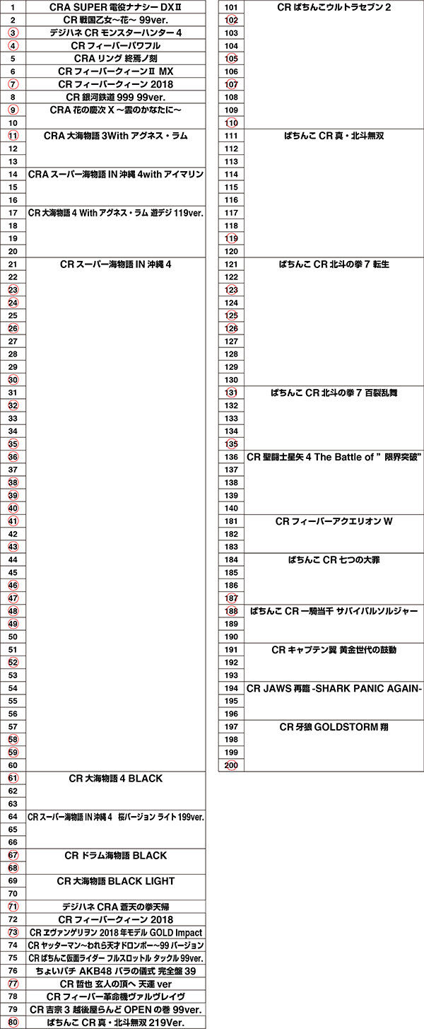 「アイムジャグラーEX-AE」や「マイジャグラーⅢ」などに、赤丸台にふさわしい台が盛りだくさんであった。