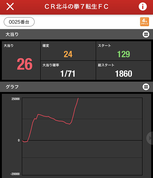 「ぱちんこCR北斗の拳7 転生」の赤丸率は60%。
