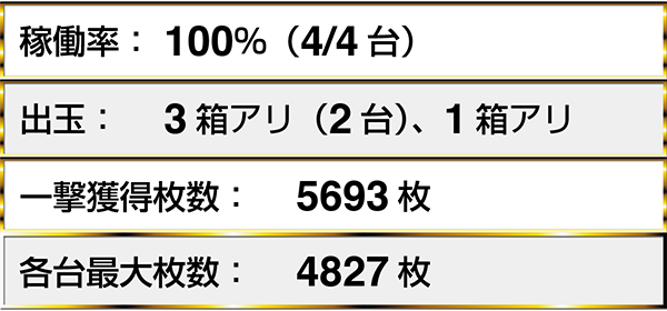 ・『パチスロ聖闘士星矢 海皇覚醒』では4名中3名に1箱以上の出玉アリ