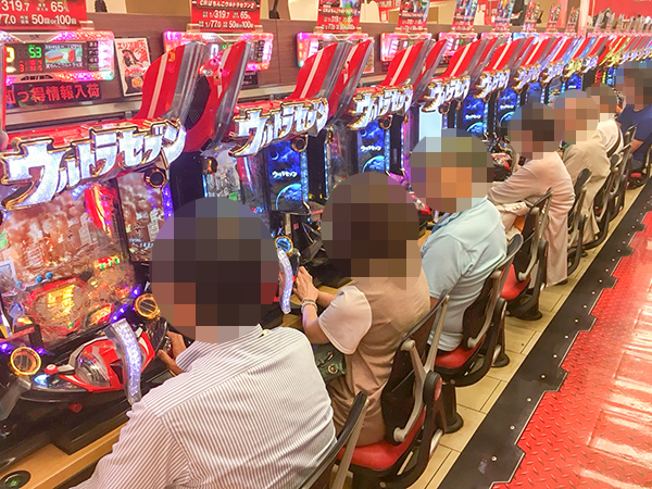 15時過ぎの4円パチンコでは、「CRぱちんこウルトラセブン2」や「CR聖闘士星矢4 The Battle of ”限界突破”」が活況。華麗なパフォーマンスを披露するプレイヤーを複数目撃している。
