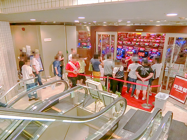 開店前から80名以上のプレイヤーが集合。会話を楽しみながら開店を待つ、実に和やかなシーンを目にしている。