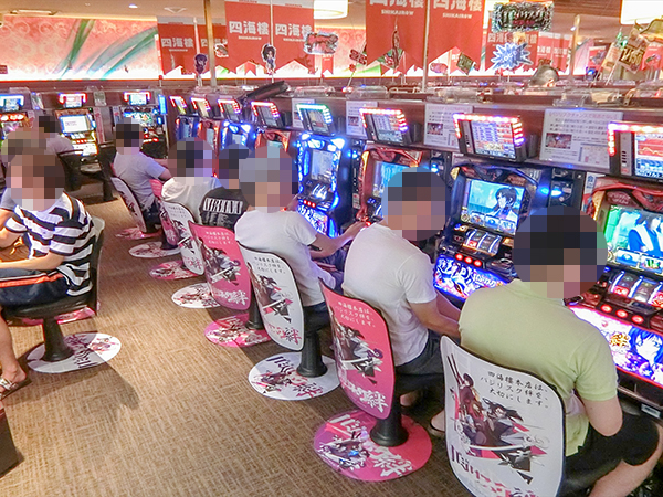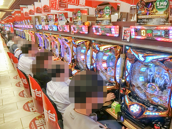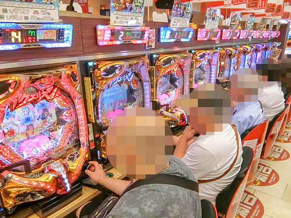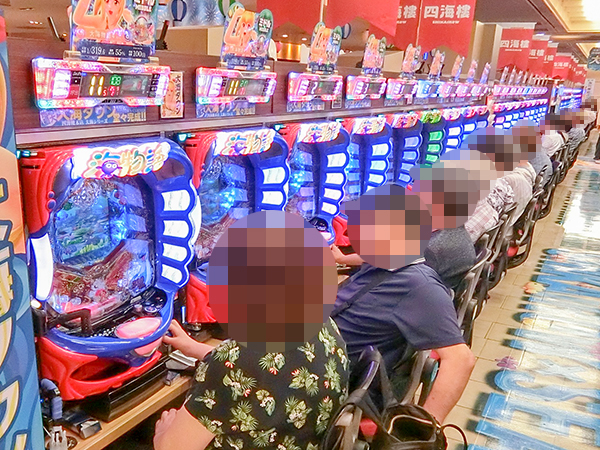 14時半ごろの4円パチンコをチェックすると、「CR大海物語4」や「CR聖闘士星矢4 The Battle of ”限界突破”」などが微笑ましいムード。至る所で機種性能を活かすプレイヤーを目にしている。