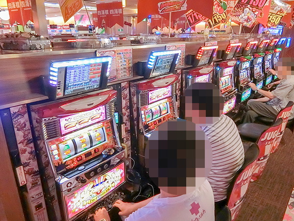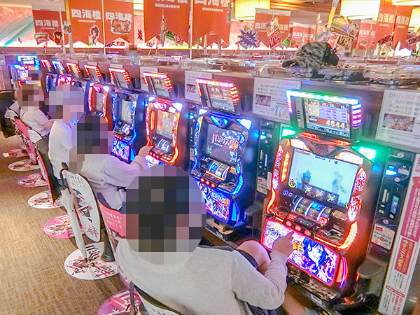 5円パチスロは機種を問わず人気が高く、空き台が見当たらないほどの盛況ぶりだった。