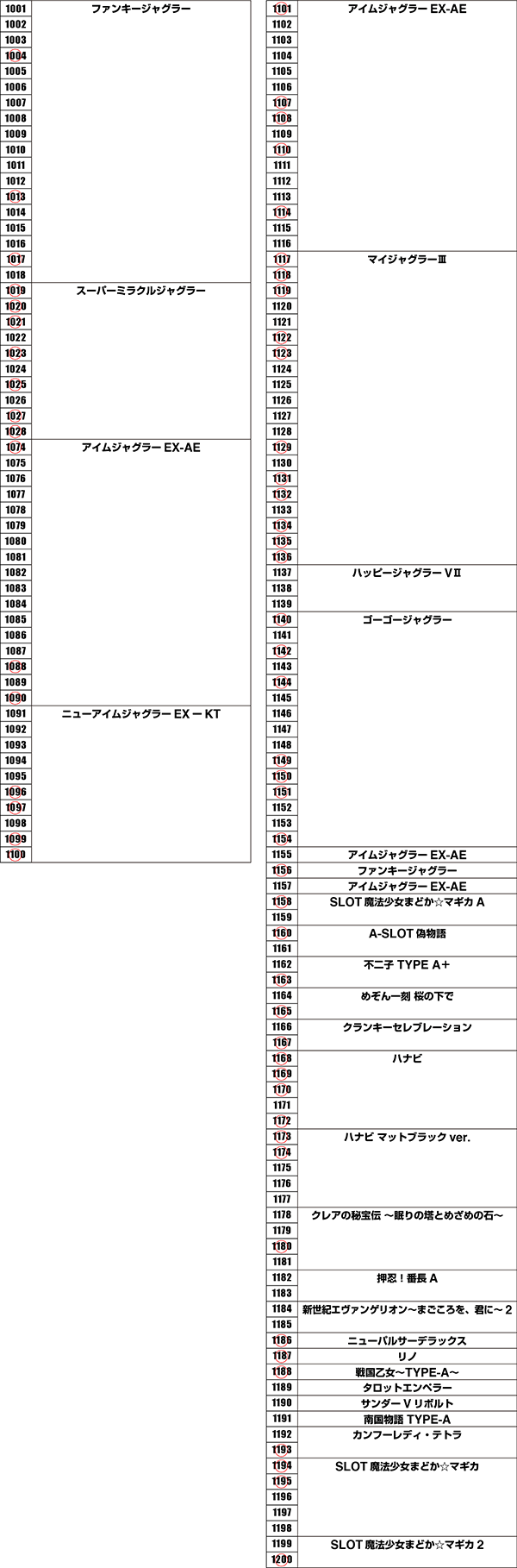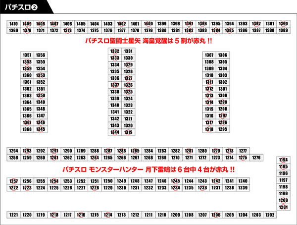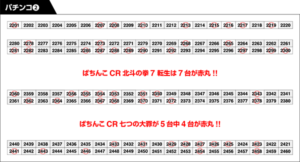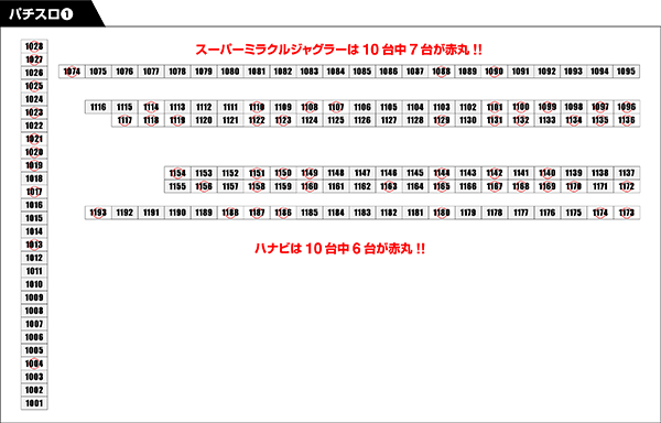 定番機種であるジャグラーシリーズや「沖ドキ!-30」にも、赤丸台が盛りだくさんであった。