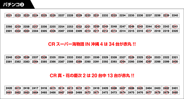 パチンコでは、「CRスーパー海物語IN沖縄4」に34個の赤丸!