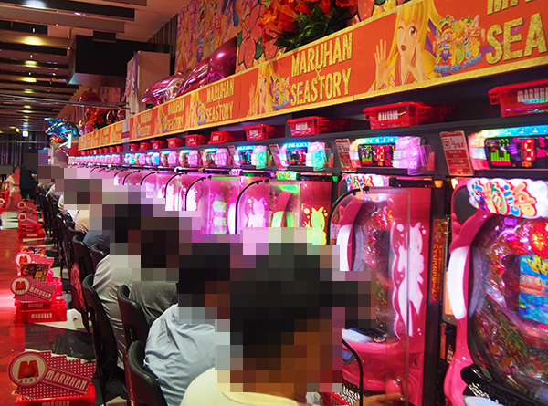 パチンコとパチスロの各シマに広がる華やかな光景に、取材班も思わず笑顔になった。